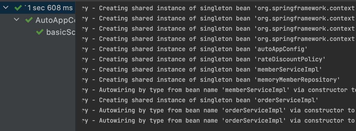 애너테이션을 준 클래스들이 찍혀있다. @Autowired의 정보들도 로그에 뜨게된다.