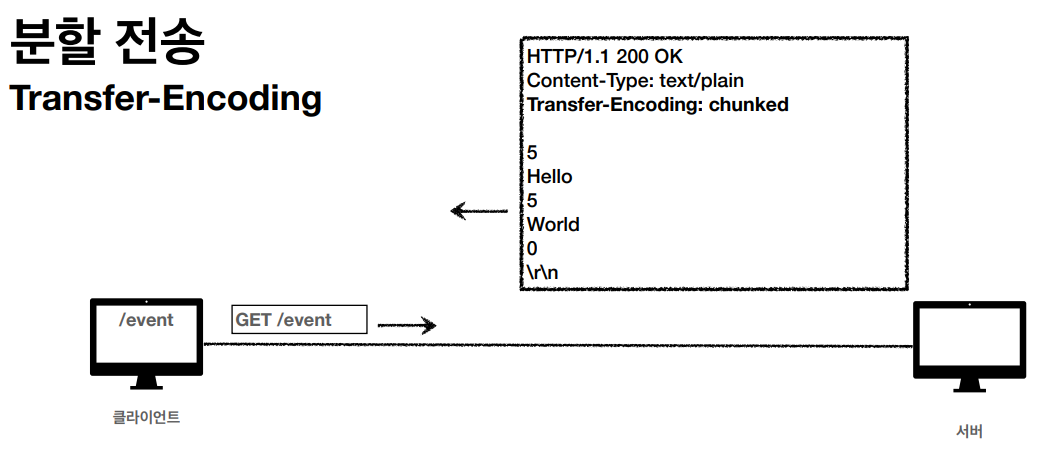 Transfer-Encoding : chunked 라고 하면 나눠서 보내게 된다.