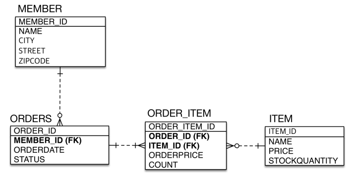- 테이블은 외래 키로 조인을 사용해서 테이블을 찾는다.