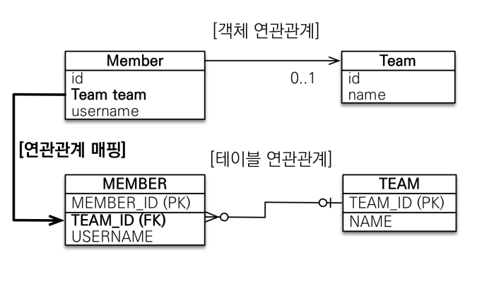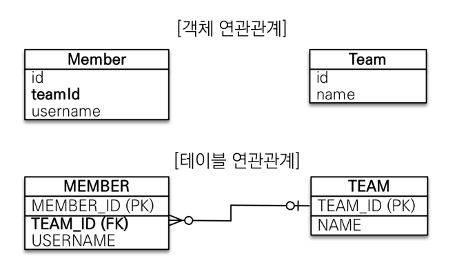 - 객체의 참조와 테이블의 외래 키를 매핑